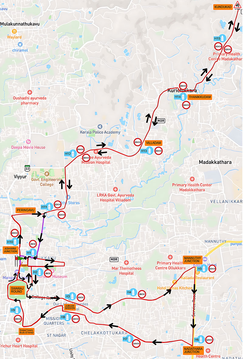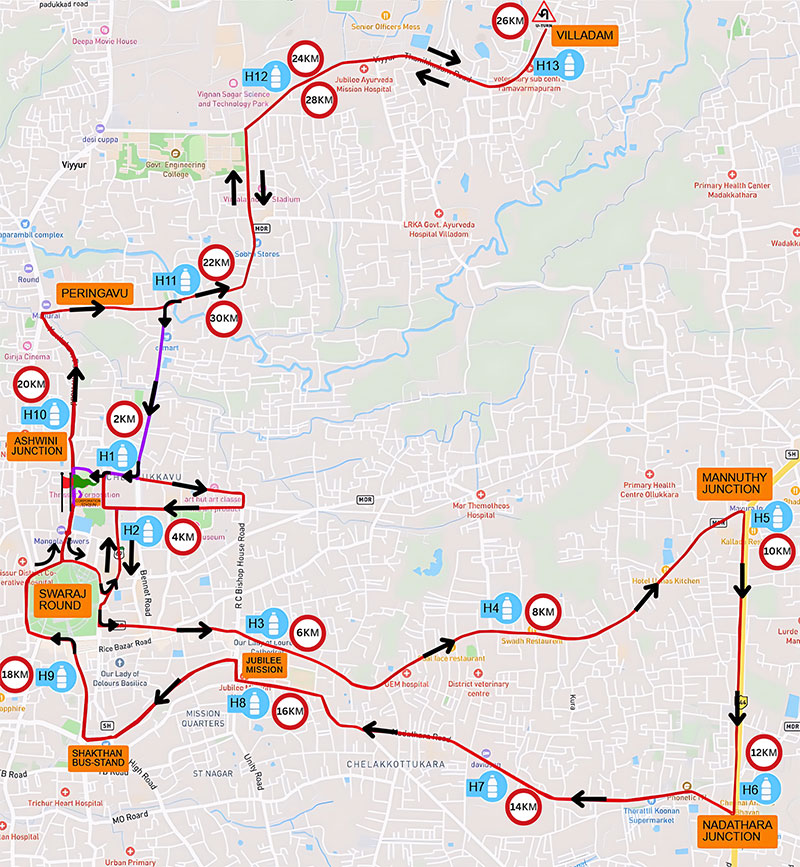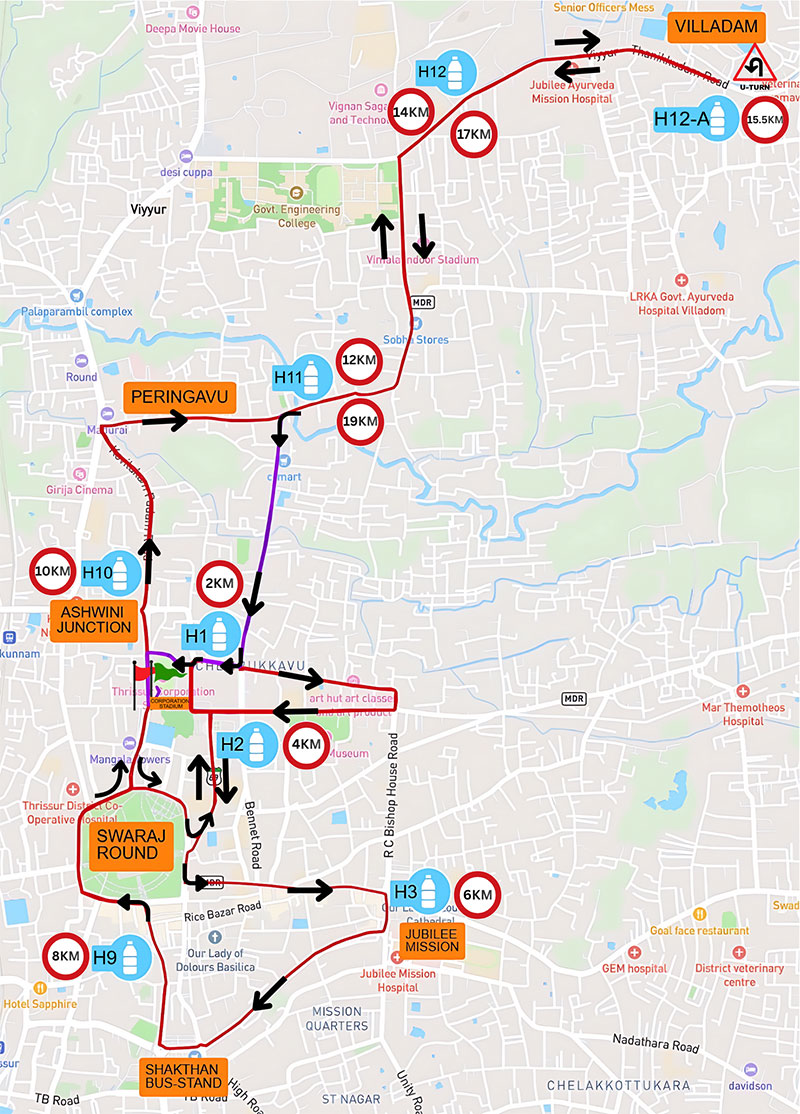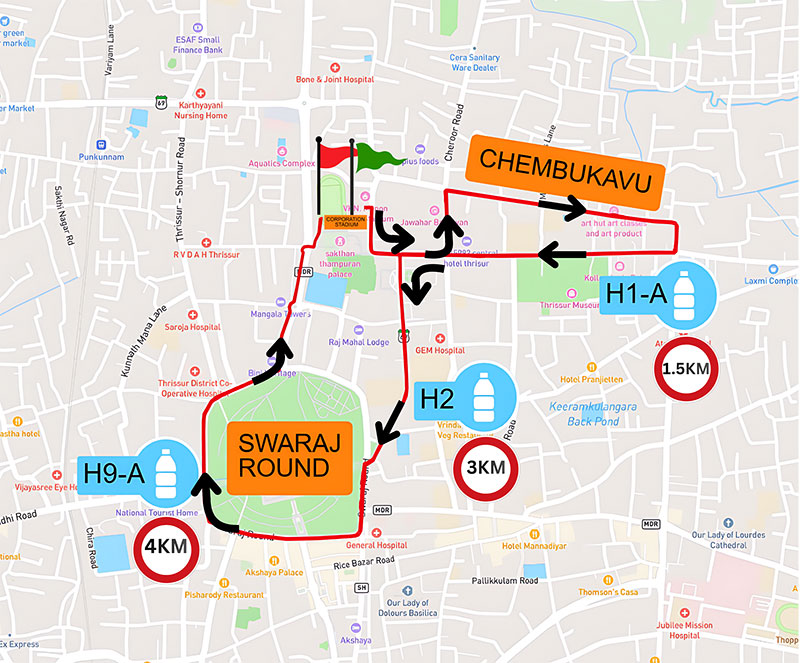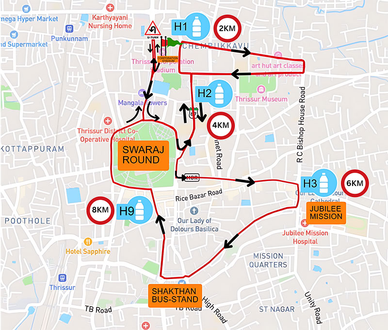 The marathon route is thoughtfully designed to showcase the vibrant spirit and cultural richness of Thrissur, with well-marked courses, trained volunteers, and traffic support to ensure runner safety. Medical teams, ambulances, and physiotherapy support will be available at strategic points throughout the course.